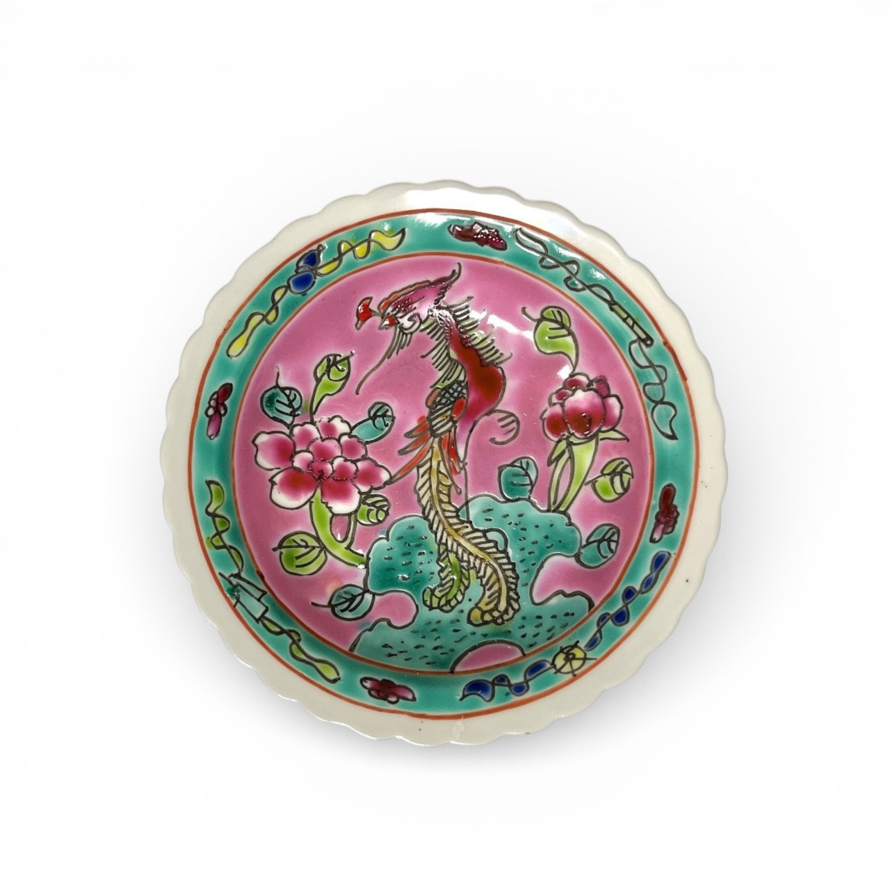 色とりどりの美しいデザインが特徴のプラナカン陶器の小皿です。